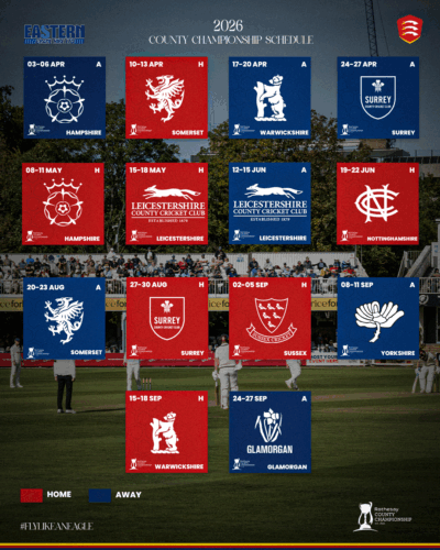 Essex Men will kickstart their red-ball campaign with an away trip to Hampshire Men at the Utilita Bowl on Friday 03 April before a clash against Somerset in front of a home crowd at the Ambassador Cruise Line Ground on Friday 10 April.