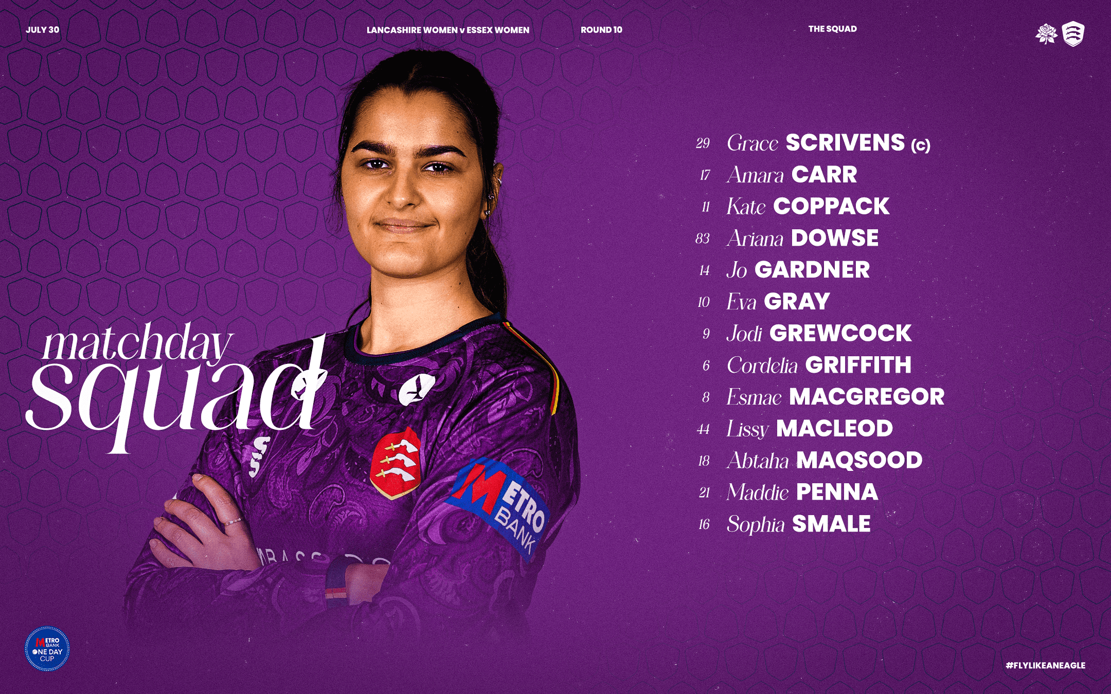 Essex Women face Lancashire Women in round ten of the Metro Bank One Day Cup, following a wash-out against Somerset at the Ambassador Cruise Line Ground last week.