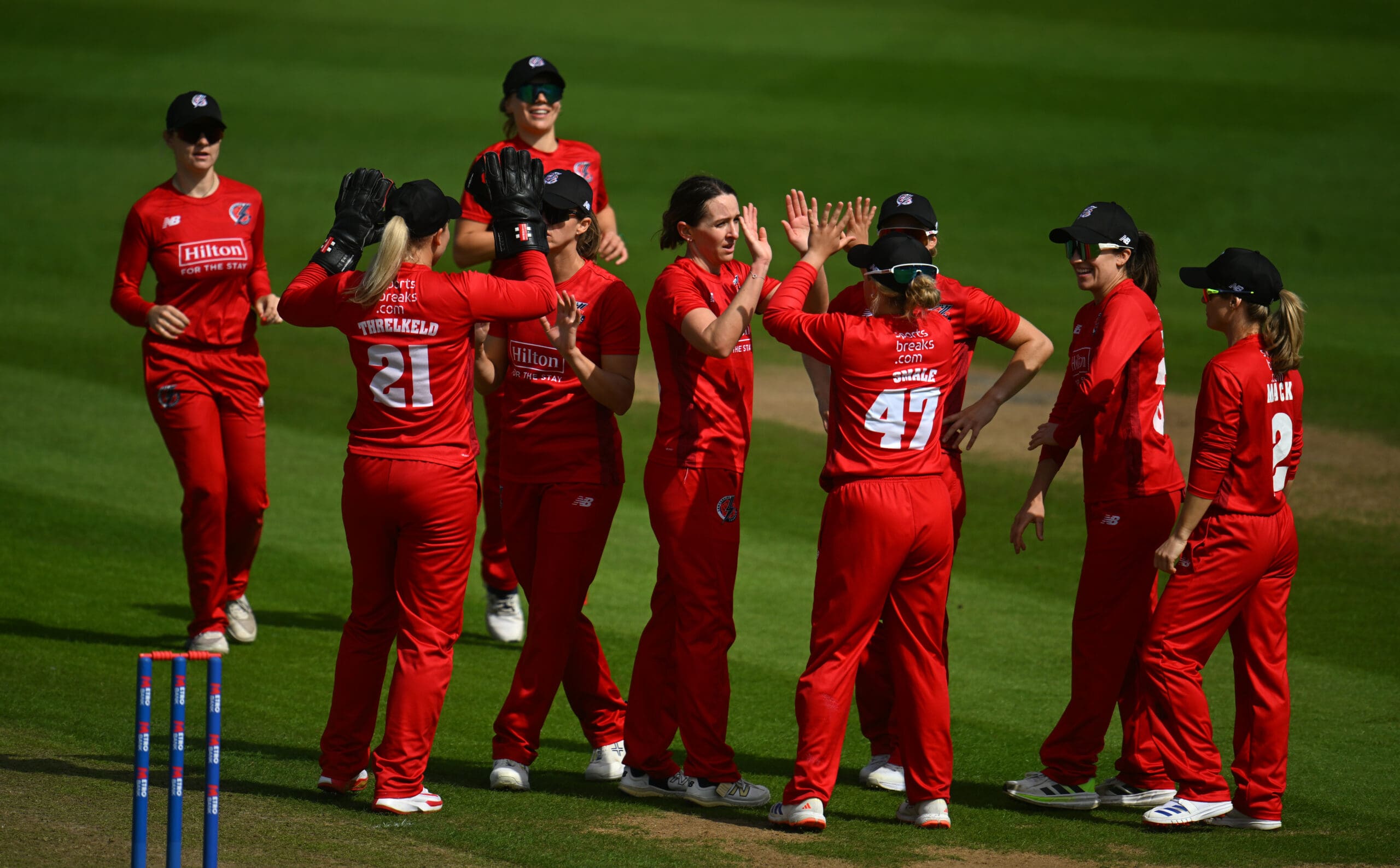 Lancashire Women: Eve Jones, Emma Lamb, Katie Mack, Seren Smale, Fi Morris, Danielle Collins, Ellie Threlkeld (c & wk), Kate Cross, Tara Norris, Grace Potts, Hannah Jones.