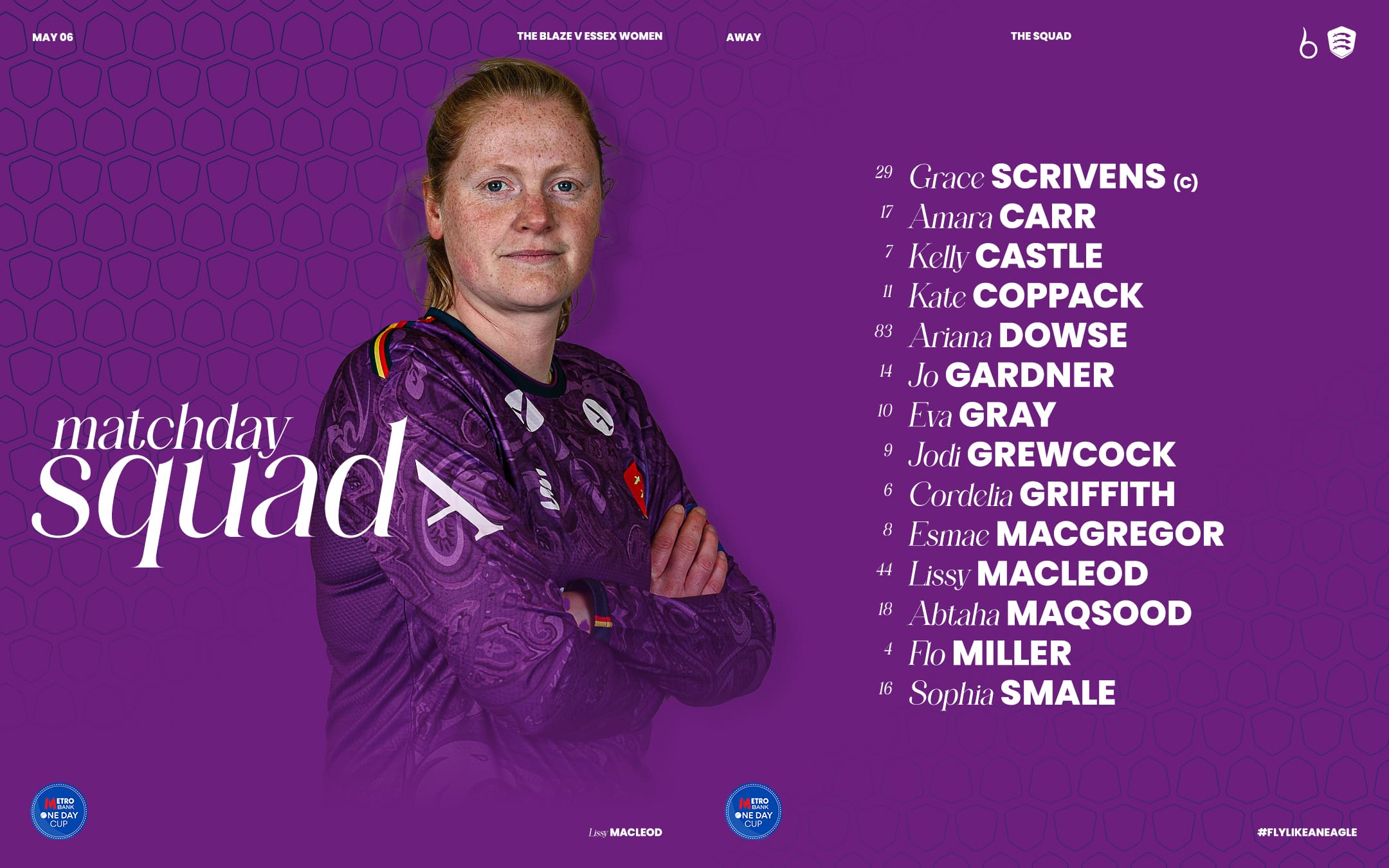 Former Essex wicket-keeper batter Scarlett Hughes is also in The Blaze ranks, whilst the Australian Heather Graham also played for the Eagles back in 2014.
