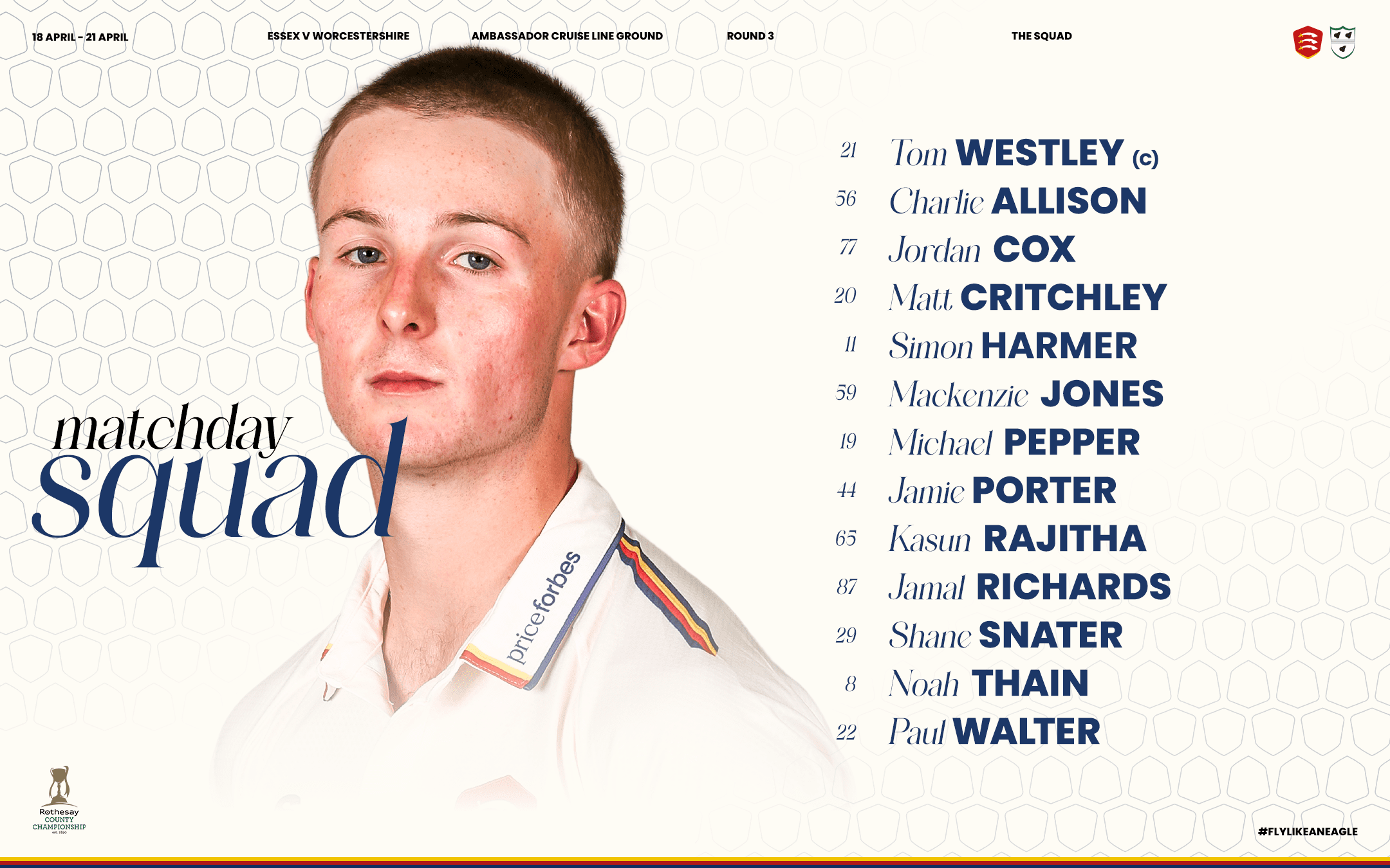 New signing and former Eagle Ben Allison returns to Chelmsford, having made his move permanent in September last year. During his loan spell with the Pears last season, Allison took seven wickets at an average of 20.28 and will be looking to spearhead the Worcestershire attack against his former club. He’ll also be facing his brother, Charlie, for the first time on the professional circuit.