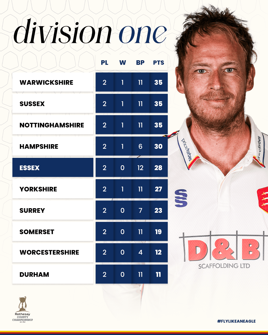 Worcestershire have begun their 2025 Rothesay County Championship campaign with a draw and a loss against Somerset and Yorkshire. These results leave them 9th in the table with 12 points as they head into their clash with Essex.