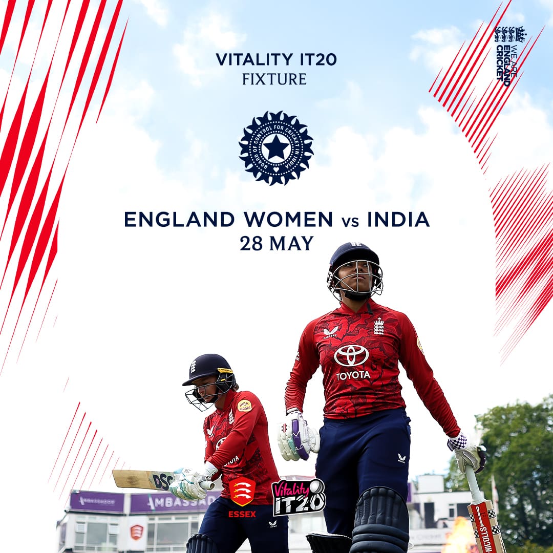 The ECB have today confirmed that England Women will return to Chelmsford on Thursday 28 May 2026 when Nat Sciver-Brunt's side face India Women in a Vitality IT20.