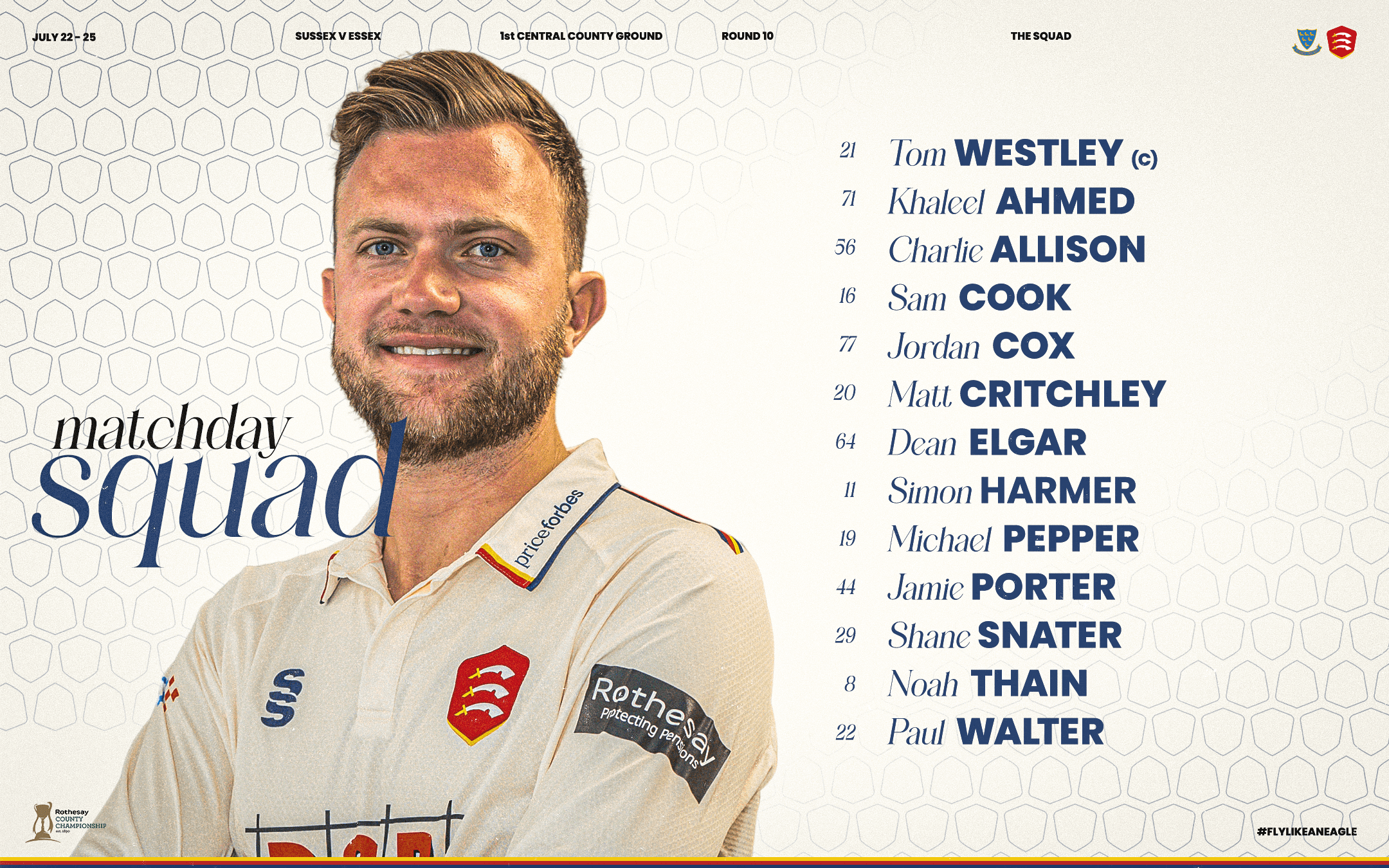 Essex: Michael Pepper, Paul Walter, Jordan Cox (wk), Charlie Allison, Matt Critchley, Luc Benkenstein, Noah Thain, Simon Harmer, Shane Snater, Mackenzie Jones, Mohammad Amir.