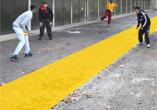 Street Chance hub sites use a fast-paced version of tape-ball cricket – a tennis ball wrapped in electrical tape – where each innings lasts for 20 balls and games last for just 20 minutes. It can be played with limited equipment and adapted to be played in almost any space, ideal for inner-city venues.
